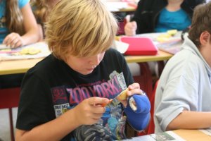 So macht es z.B. den Fünftklässlern viel Spaß, an einem Tag das Leben in der Steinzeit auszuprobieren. Dazu gehören das Feuermachen, das Bauen eines Steinzeittipis, das Anfertigen von Höhlenmalereien mit selbst hergestellten Farben und und und ...